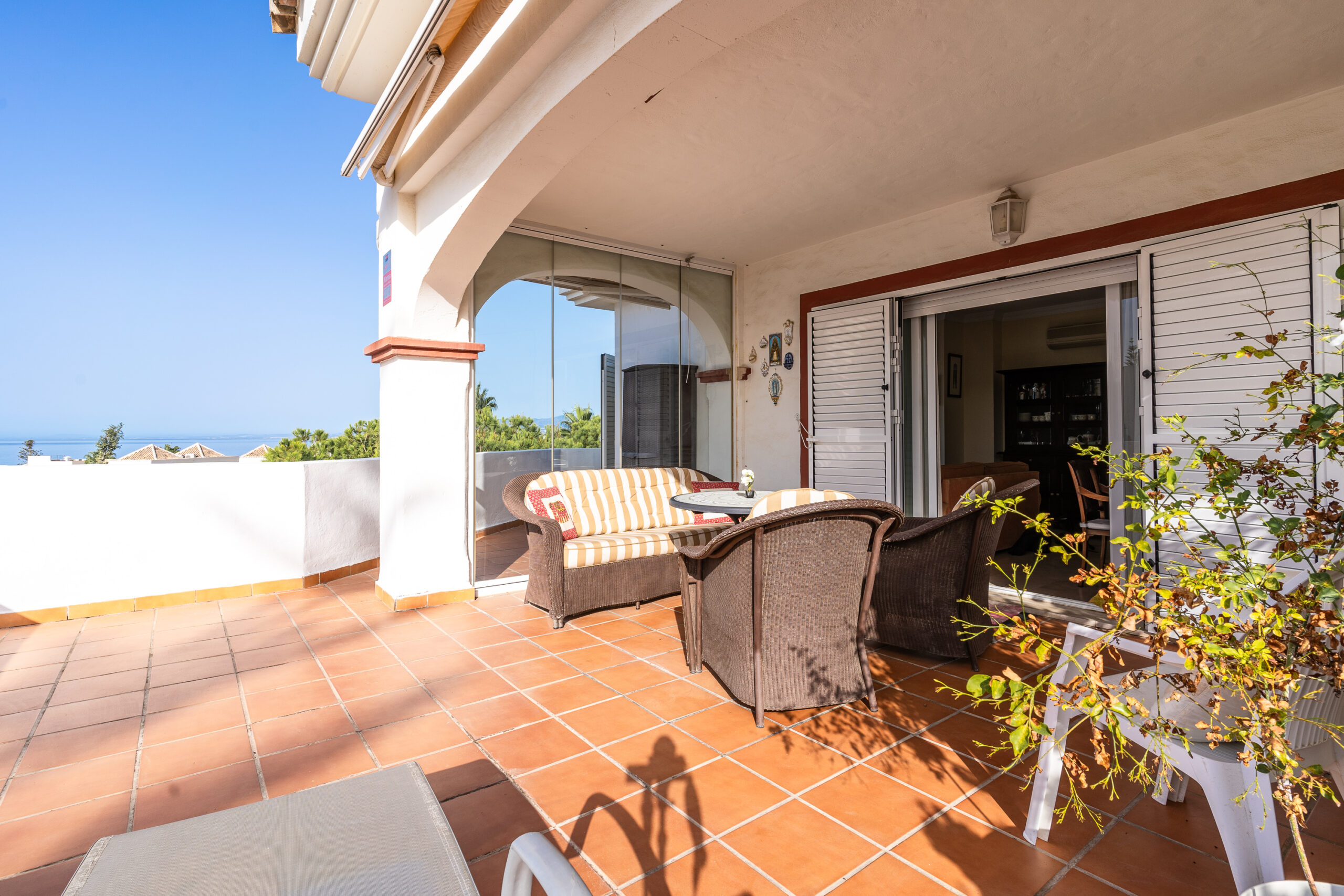 Precioso y luminoso ático dúplex situado en Elviria, a 2 minutos a pie de una de las mejores playas de la Costa del Sol y a sólo unos pasos del centro comercial de Elviria con sus numerosos servicios.La propiedad se distribuye en 2 plantas. En el nivel principal se encuentra una cocina independiente con lavadero, aseo de invitados y un salón orientado al suroeste que conduce a la gran terraza con vistas panorámicas al mar y a la costa.En la segunda planta se encuentran 2 dormitorios con baños en suite y una terraza más.